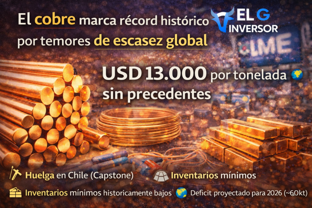 Los precios del cobre alcanzaron un nuevo máximo histórico, superando por primera vez los USD 13.000 por tonelada, impulsados por